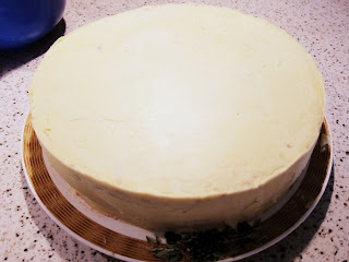 9. Lägg sedan skålen över en liten kastrull med sjudande vatten och vispa på högsta effekt i tills glasyren blir riktigt tjock och glansig. Ta bort skålen från värmen tillsätt ev. färg och fortsätt vispa tills glasyren svalnat.